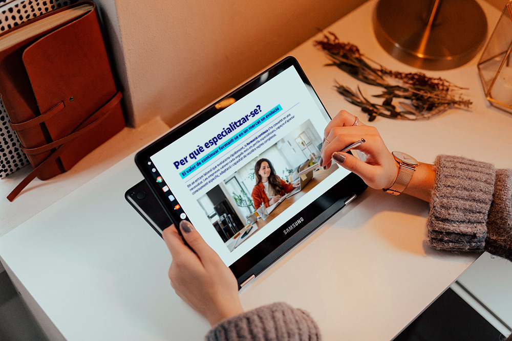 Sabem que tens feina, vida personal i altres compromisos. Per això, els cursos d'especialització a distància són una opció excel·lent per a persones en actiu que no volen renunciar a continuar formant-se. La modalitat en línia et permet organitzar el teu temps, evitar desplaçaments i adaptar l'estudi a les teves estones lliures.