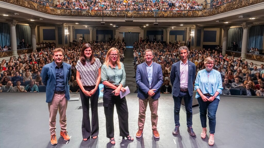 Funció social, singularitat, evolució del model educatiu, aliances, finançament, naturalesa jurídica, governança… són algunes de les prioritats d'actuació que la rectora de la UOC, Àngels Fitó, i el seu equip de govern han compartit amb les més de mil persones de l'equip propi aplegades el dilluns 9 d'octubre al Teatre Coliseum de Barcelona. Al llarg d'un parell d'hores, la rectora Fitó, amb les vicerectores Teresa Guasch i M. Jesús Martínez-Argüelles, els vicerectors Xavier Vilajosana i Manel Jiménez-Morales, i el gerent, Antoni Cahner, ha anat desgranant i explicant les prioritats estratègiques dels primers anys del mandat.
