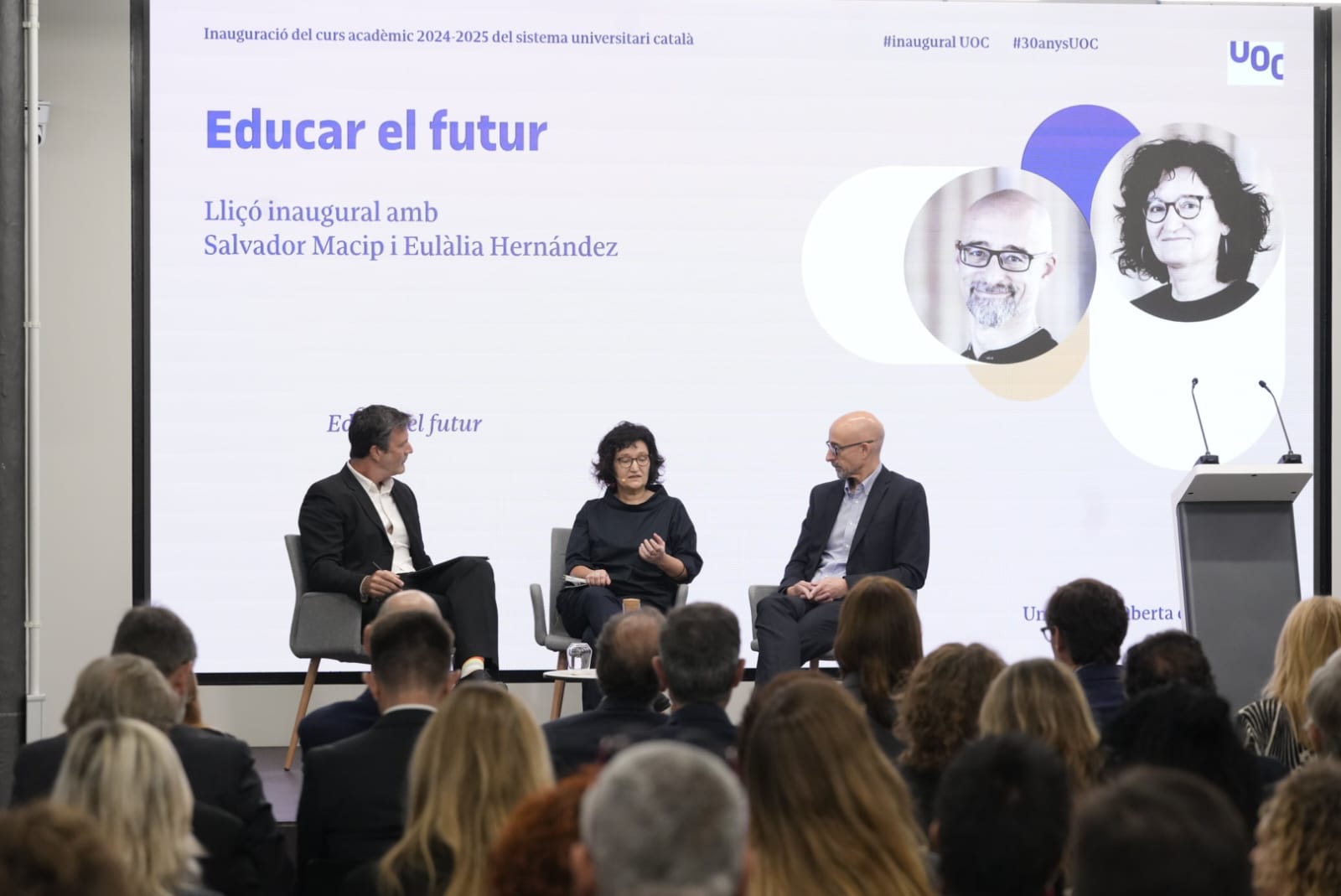 La lliçó inaugural del curs, titulada Educar el futur, ha pres forma de conversa entre els doctors Salvador Macip, director dels Estudis de Ciències de la Salut, i Eulàlia Hernández, professora dels Estudis de Psicologia i Ciències de l'Educació.