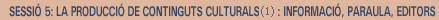 Molt bona tarda a tots. Avui celebrem aquesta cinquena sessió del cicle Cultura XXI: Nova economia? Nova societat?. Com vostès saben, el tema d'avui és "La producció de continguts culturals (1): informació, paraula, editors" o tot allò que té a veure amb la difusió del text o de la paraula a través dels mitjans virtuals.