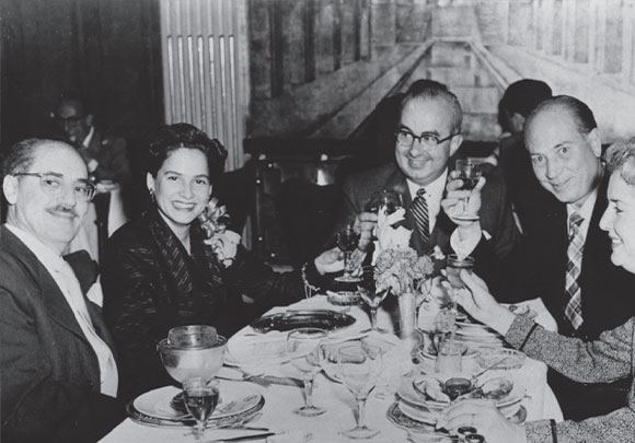 Dalmau Costa, al costat de Groucho i Harpo Marx, al seu restaurant, el cèlebre Ambassadeurs