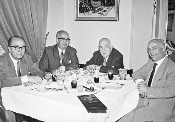 Sopar d’amics, al Port de la Selva, l’11 de maig de 1961; d’esquerra a dreta, Francesc Fontanals, Dalmau Costa, Josep Maria de Segarra i Joaquim Ventalló