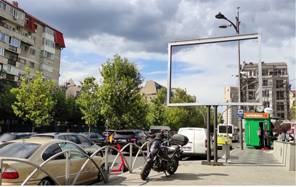 Una marquesina sense publicitat exterior, «nua», a Bucarest (Romania) a l’agost del 2021