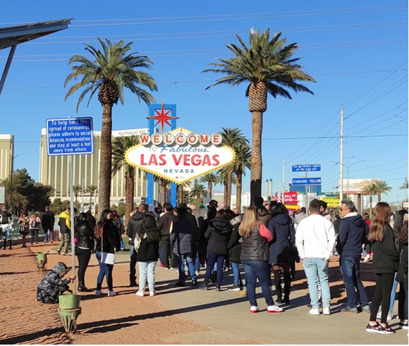 Gent amuntegada, aquest 2022, esperant per fotografiar el famós cartell de «Benvingut a Las Vegas», convertit en una icona i punt de referència en aquesta ciutat