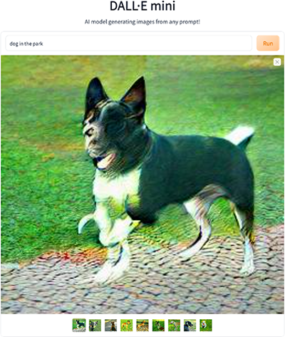 Sens dubte, aquests dibuixos que provenen del DALL-E mini donen joc a la imaginació. D’una banda, alguns semblen intents maldestres de dibuix o de pintura (com aquella imatge de l’Ecce Homo popularitzada anys enrere) i d’altres recorden una mica les pintures de Francis Bacon, com aquest gos configurat amb diferents posicions que apareix amb la cerca «Dog in the park» (realitzada amb la versió online de l’aplicació).