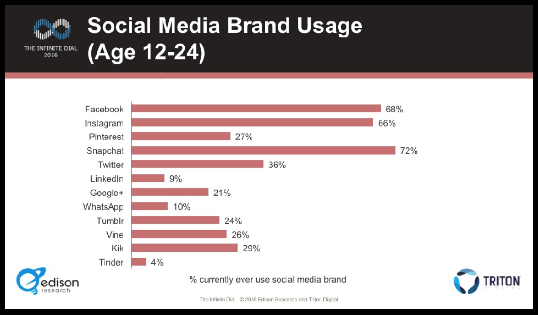 Snapchat ja s’ha postulat com la xarxa social preferida dels adolescents. Així ho conclou l’estudi dut a terme per l’Edison Research entre més de 2.000 individus nord-americans de 12 a 24 anys. D’aquesta manera Snapchat està desbancant xarxes tan conegudes com Instagram i Facebook en el consum que realitza aquest col·lectiu. Tot i que els adolescents acostumen a utilitzar diverses xarxes socials, els joves usuaris de Facebook als Estats Units han passat del 80% el 2014 a un 68% el 2016.