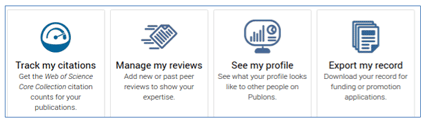 Figura 2. Serveis que ofereix Publons als usuaris que entren a la plataforma