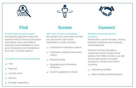 Figura 3. Serveis oferts per Publons a editorials a través de Reviewer Connect