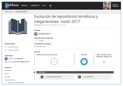 Publons esdevenia una eina nova que vol resoldre aquestes discordances. Fins ara no existia cap base de dades ni mitjà social amb un valor semblant.