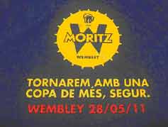 Otra acción que tuvo bastante trascendencia en las redes sociales fue el lanzamiento de la edición limitada de la Moritz Wembley para la celebración de la final de la Champions League del 2011. La etiqueta de la botella, invirtió la "M" del logo de Moritz por la "W" de Wembley para esta ocasión. Además de la botella, se crearon unas camisetas conmemorativas especiales que se iban repartiendo en un autobús que recorría toda Catalunya unos días antes del partido. A través de Facebook se anunciaba en qué ciudad irían ese día en concreto, creando un fuerte revuelo en el muro de la marca. Las camisetas tenían el mismo logo de la botella de edición limitada delante y el lema "Volveremos con una copa de más, seguro" escrita en la parte posterior. Con esta acción, se vinculaban de manera directa a un club de fútbol como el Barça, sin tener que pagar la cantidad de dinero que supondría una esponsorización. Pensemos en la poca gracia que debió hacer esta acción a Estrella Damm, cuando ellos sí que realizan acciones de pago vinculadas al mismo club.