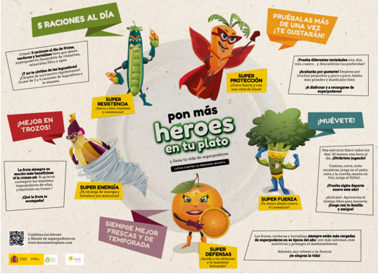 La Agencia Española de Seguridad Alimentaria y Nutrición (AESAN) ha puesto en marcha una campaña para mejorar la calidad de la dieta de los niños y las niñas, mediante la estrategia NAOS. Con el lema de «Pon más héroes en tu plato y llena tu vida de superpoderes», la acción afirma tener como objetivo «fomentar una alimentación saludable y luchar contra la obesidad infantil promoviendo el consumo de fruta, verdura y legumbres, y el deporte».