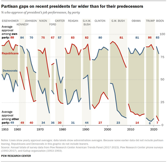 Para entender la polarización que tiene lugar en los Estados Unidos (porque parece que solo existe cuando hay elecciones), este artículo y la siguiente gráfica del Pew Research Center lo ejemplifica perfectamente, porque los movimientos históricos no siempre suceden de la noche a la mañana.
