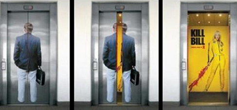 -¿Te has fijado en el efecto? Solo falta oír el chás metalizado de la catana afiladísima de Uma Thurman mientras se abren las puertas. -Ingenioso, lo que llegan a inventarse para promocionar una película. -Es que Tarantino es mucho Tarantino. -¿Viste la primera Kill Bill? -¡Por supuesto! -Uy, con la cháchara no hemos llamado. – ¿Ibas al quinto, verdad?