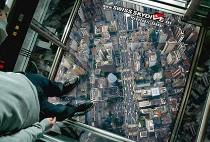 -¿Quepo? -Nos apretamos, pero dale al quinto, porfa. -Uf, qué calor, suerte que va rápido. -Sí, este ascensor va que vuela y, hoy, más que nunca. -¿Por...? -Mira al suelo. -Aaagggrrr... ¡¿qué han puesto?! -Una pasada, ¿eh? -A ver si vais bajando, que lo quiero ver bien. -Adiós /Nos vemos/Vaya bien... -¡Qué bueno, es de una escuela de paracaidismo! -¿Nos apuntamos? -Ni loco. -¿Seguro?