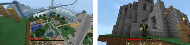 Minecraft ofrece dos modos de juego. El modo creativo permite al jugador construir por el placer de construir, manipular e investigar de manera libre, sin restricciones. En el modo supervivencia, la construcción de espacios y estructuras tiene como principal objetivo la defensa de los enemigos.