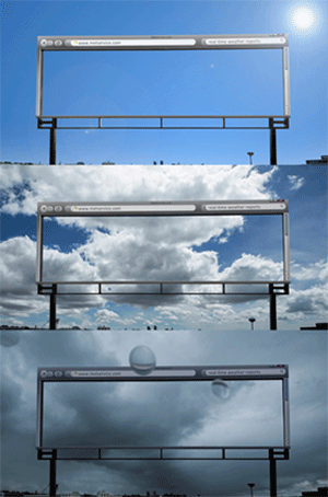 Literalmente, hay una publicidad alternativa basada en la meteorología. O como mínimo, un aprovechamiento oportunista de las condiciones atmosféricas en favor de las marcas. A veces se emplea al más puro estilo guerrillero (con pocos recursos, impactando al consumidor cuando menos se lo espera, de manera ingeniosa) y otras veces, con una estrategia creativa y de medios más elaborada, propia del llamado ambient marketing.
