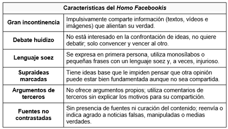 Esta presión e incapacidad de esperar y pensar las consecuencias se debe a diferentes circunstancias que explicaremos más adelante (ventanas conceptuales, posverdad y filtro burbuja), pero se enfatiza y afecta principalmente a personas que en algún momento adoptan rasgos de una especie que en este artículo denominaremos Homo Facebookis.