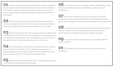 modelo híbrido de publicación no cumple los principios de la coalición. Esto presentaba dudas como si quería decir que ya no se podía publicar en aquellas revistas investigación financiada por las instituciones promotoras, en algunas disciplinas, el conjunto de revistas