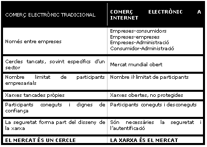 Taula 3. Diferències entre comerç electrònic tradicional i per Internet