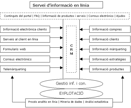 Aquests mòduls se situen a un mateix nivell en la jerarquia de l'empresa i han d'estar interrelacionats amb els dispositius front-office (gestió externa) i back-office (gestió interna) de l'organització, com ara: el seu lloc web, la infraestructura organitzativa, els processos de gestió d'informació i coneixement, i també el model de comerç electrònic que forma el sistema global de l'organització.