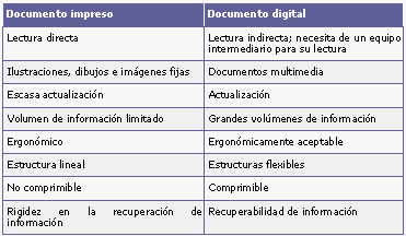 | Tabla 2. Diferencias entre el documento impreso y el documento digital |