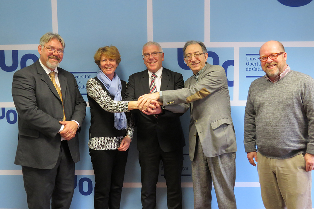The agreement between the two university organizations has been signed today, 3 March, by Josep A. Planell, President of the UOC; Robin Gravina, Cambridge English Language Assessment Key Account Manager for Spain and Portugal, on behalf of Saul Nassé, Cambridge English Language Assessment's Chief Executive; and Mary Jane Pratt, Director of the Girona Examination Centre (ES780), who will be responsible for administering and organizing the examinations.