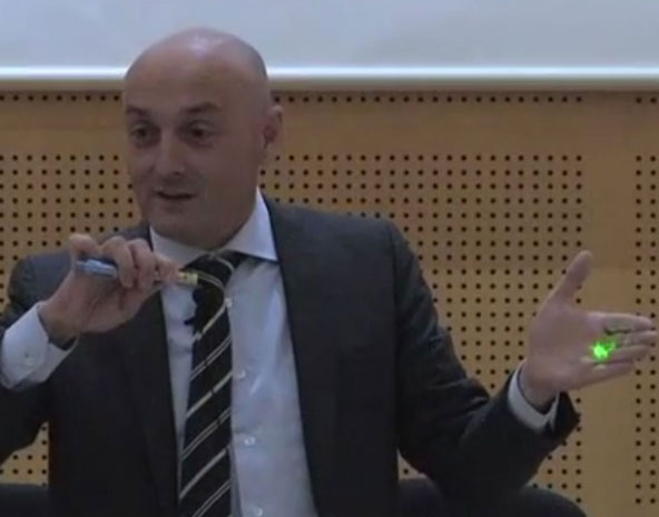 Conferencia de Lluís Torner, fundador y director del Instituto de Ciencias Fotónicas, un centro de investigación que ha logrado en 10 años el reconocimiento internacional, en el mar de la Jornada Anual Alumni realizada el día 11 de Mayo de 2013 al INEFC Barcelona.
