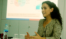 González-Bailón expuso el resultado de investigaciones recientes sobre dinámicas colectivas que tratan los efectos de las redes sociales en la participación política, puesto que «las nuevas fuentes de datos aportan más pruebas empíricas sobre las redes sociales y la difusión de información». Basándose en estos nuevos datos, la investigadora expuso unas conclusiones que rompen la imagen que a menudo acompaña las redes sociales.