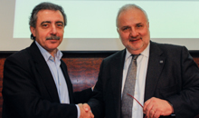 El rector de la UOC, Josep A. Planell, y el director del Museo Nacional Centro de Arte Reina Sofía, Manuel Borja-Villel, han presentado este jueves el primer grado de Bellas Artes en línea que se hará en el mundo. En un acto que se ha celebrado en la sede central de la UOC, en Barcelona, ambas instituciones han firmado un convenio para hacer posibles estos estudios pioneros a partir del año 2016.