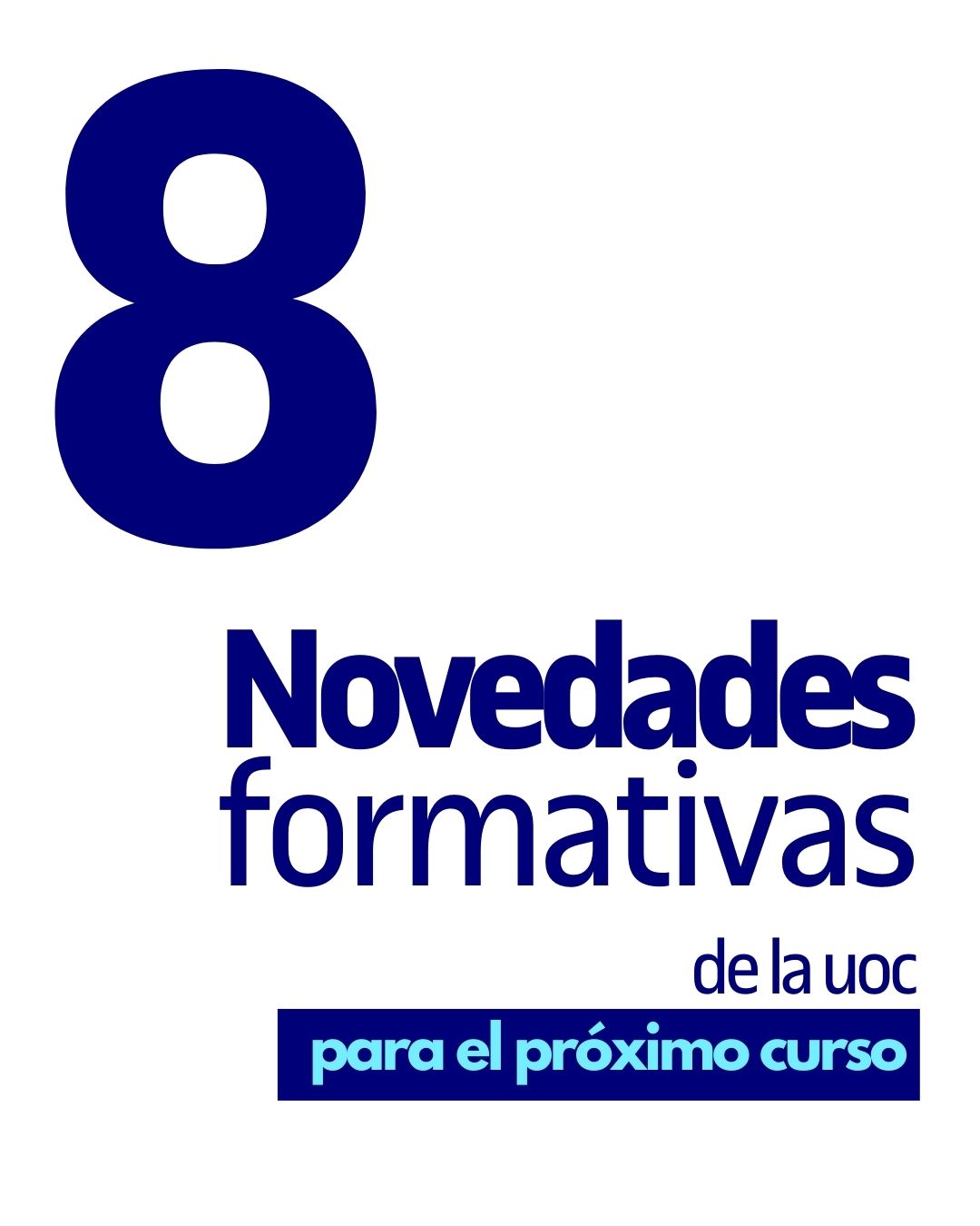 Estos dos grados no son las únicas novedades formativas oficiales que la UOC ofrecerá durante el próximo curso: hay que añadir, además, el máster universitario de Análisis Político y Gobernanza y el máster universitario de Relaciones Internacionales. Asimismo, los actuales másteres universitarios de Desarrollo de Sitios y Aplicaciones Web y de Prevención de Riesgos Laborales se ofrecerán con mención dual; es decir, el aprendizaje de algunas asignaturas de estas titulaciones se adquirirá en una empresa del sector. La formación dual se desarrolla con un proyecto formativo común entre la empresa y la universidad, y ofrece un número de plazas con esta mención para algunos estudiantes del programa.