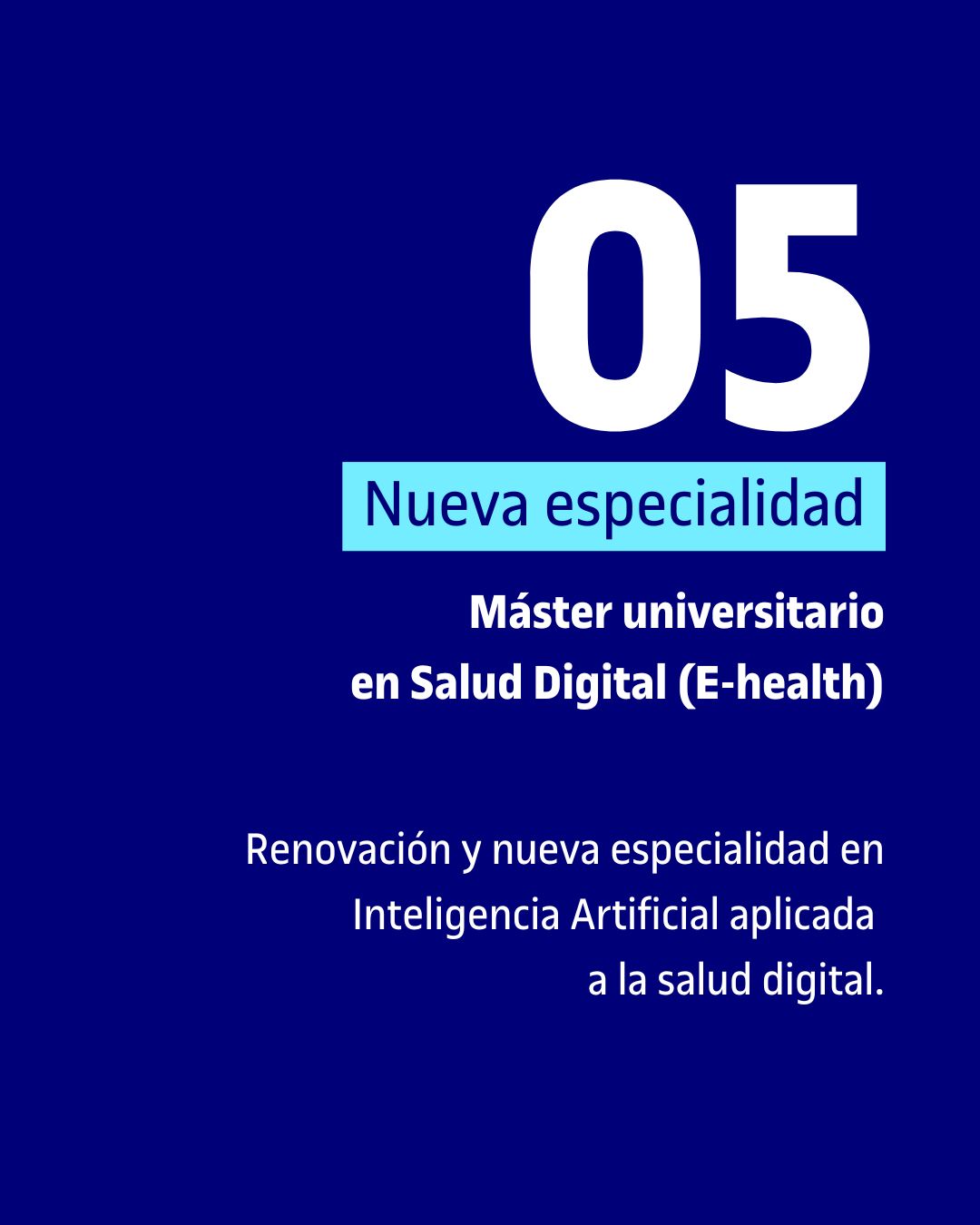 La nueva oferta se complementará con la renovación y una nueva especialidad de inteligencia artificial (IA) del máster universitario de Salud Digital (E-health).