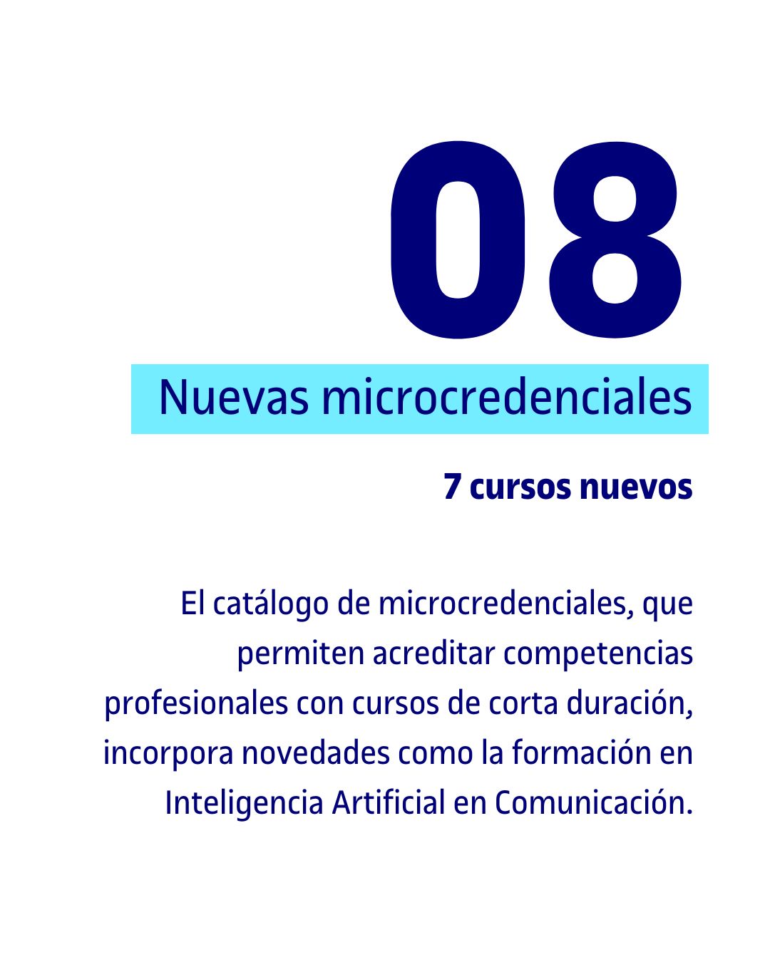 Las microcredenciales son la gran apuesta formativa de la UOC para promover la empleabilidad. Han sido una novedad de este curso, y ofrecen a la ciudadanía una vía para acreditar competencias profesionales con cursos de corta duración. Este año, unas mil personas se han matriculado de las microcredenciales de la UOC. Durante el próximo curso, el catálogo se ampliará con siete novedades: