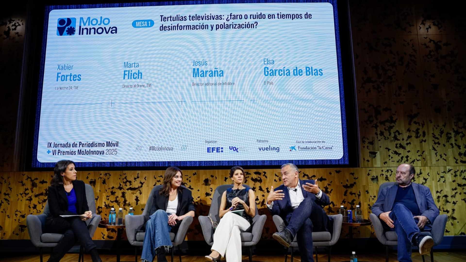 Esta cuestión fue abordada por algunos de los presentadores más reconocidos de TVE, como Xabier Fortes, director de La noche en 24 horas, y Marta Flich, periodista y economista al frente de Directo al grano, durante la novena edición de la Jornada de Periodismo Móvil MoJoInnova, organizada por la Universitat Oberta de Catalunya (UOC) y la Agencia EFE. Ambos intervinieron en una mesa redonda junto con Jesús Maraña, director editorial de infoLibre, y Elsa García de Blas, periodista de El País.