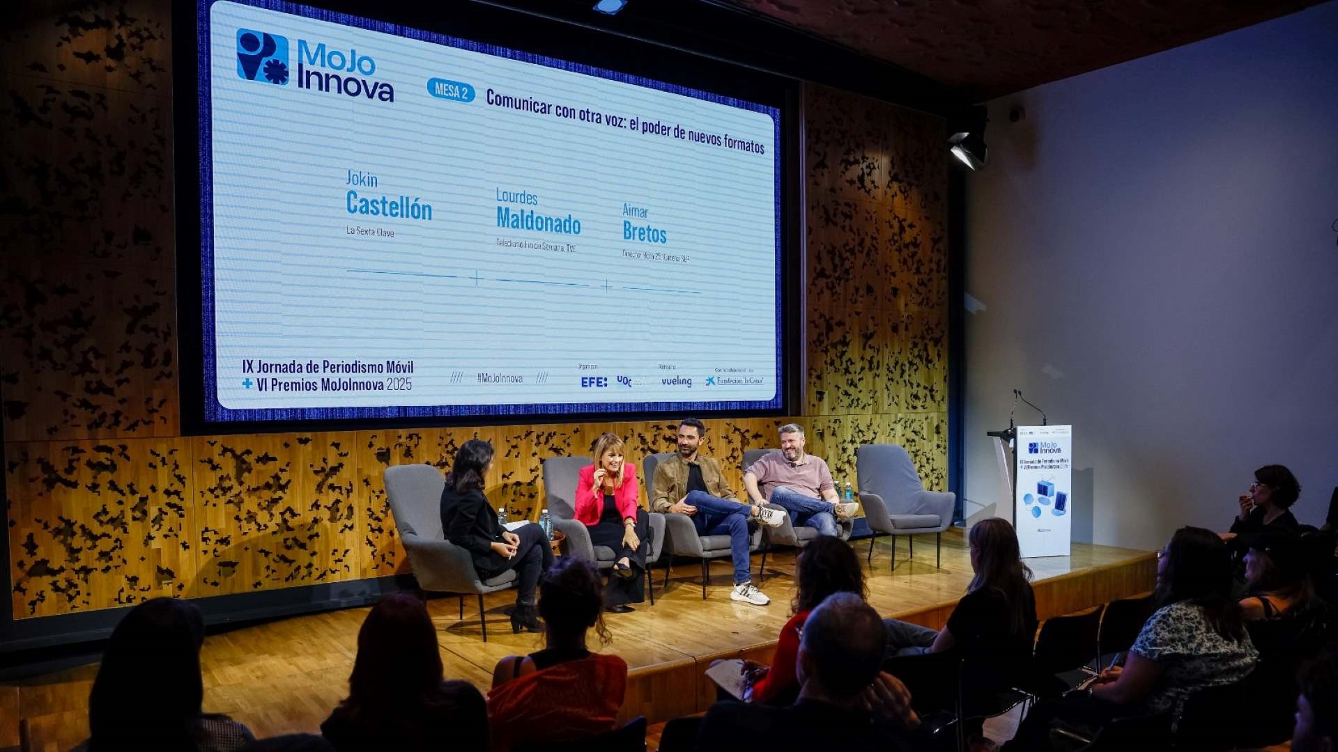 La jornada incluyó, asimismo, el debate "Comunicar con otra voz: el poder de nuevos formatos", con la participación de Jokin Castellón (laSexta Clave), Lourdes Maldonado (telediario de fin de semana de La 1) y Aimar Bretos (Hora 25, Cadena SER). En esta mesa se reflexionó sobre la importancia de adaptar los contenidos a los distintos formatos digitales, la necesidad de imprimir un sello personal al trabajo periodístico, y las formas de llegar a mayores audiencias sin renunciar a ejercer un periodismo con valores.