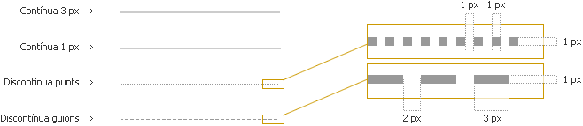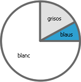 Pes visual dels colors: 75% blanc, 15% grisos i 10% blaus.