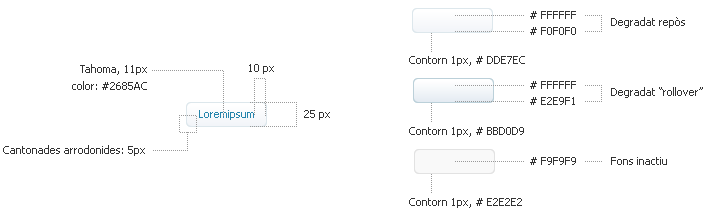 Els botons tenen tres estats diferents: repòs, rollover i inactiu.