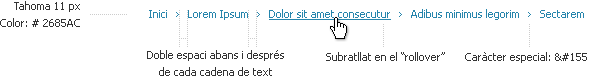 Per a situar l'usuari en l'arquitectura del web, pots fer servir el fil d'Ariandna, en anglès "breadcrumb".