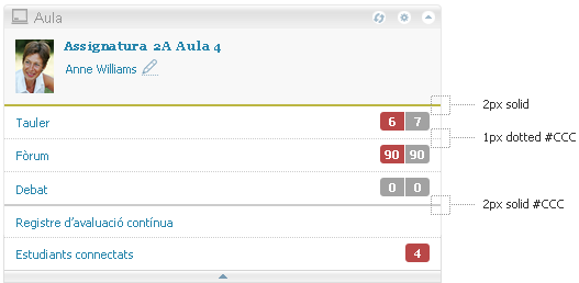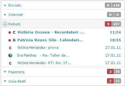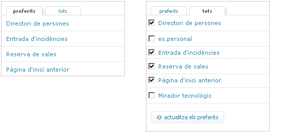 Per a afegir informació a la vista principal, pots fer servir les pestanyes petites.