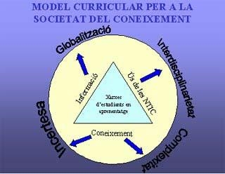 Tenint en compte que el currículum ha de respondre tres preguntes fonamentals: què s'aprèn?, com s'aprèn?, i quin és l'entorn d'aprenentatge?, i alhora ha de considerar factors condicionants (social, històric, polític, econòmic, filosòfic i científic) i condicions substancials (antropològica, epistemològica, psicològica, biològica), es pot arribar a definir un conjunt de bases curriculars que fonamenten un model innovador anomenat "model curricular per a la societat del coneixement", que té com a centre la col·lectivitat –o xarxes– d'estudiants, els quals estan circumstancialment condicionats per l'ús de les NTIC, la informació i el coneixement, factors que s'articulen amb la realitat global en totes les seves expressions.