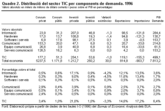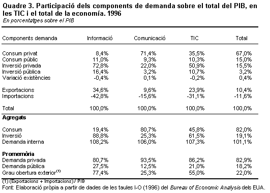 de l’economia. L’elevada partipació de les TIC sobre la producció a alguns