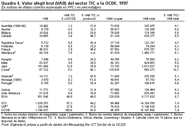 donant com a més productius el sector TIC dels EUA i Corea. En aquest sentit,