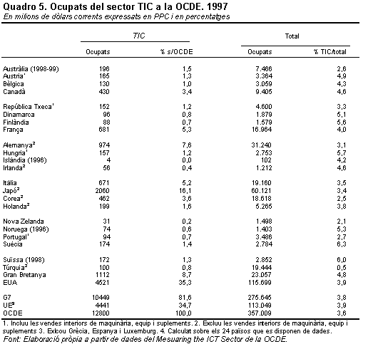 Hungria (amb un 5,7%), Noruega (5,3%) i Dinamarca (5,1%). Als EUA les TIC