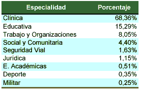 Tabla 1 Especialidad de los psicólogos según el COP. Tomado de José Ramón Fernández (2000).