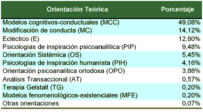 Tabla 2 Orientación teórica de los psicólogos según el COP. Tomado de José Ramón Fernández (2000).