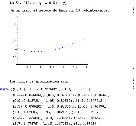 Ejemplo: resolver el Problema de Cauchy: y' = (x-y) / 2 en [0,3] con y(0) = 1. Usar el método de Heun con m = 20 pasos.
