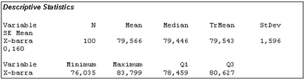 A fin de visualizar el Teorema de Distribución de las Medias Muestrales, vamos a simular, con ayuda del Minitab, la extracción de k = 100 muestras de una variable normal con media 80 y desviación típica 5. Tomaremos como n = 9 el tamaño de cada muestra: