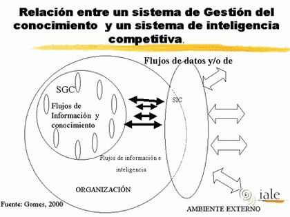 En la actualidad, la corriente de gestión del conocimiento y la corriente de inteligencia competitiva se encuentran en una fase de convergencia, de síntesis. Las empresas, después de andar un poco distraídas, se han dado cuenta de que son corrientes complementarias. La gestión del conocimiento documenta o aprovecha las experiencias de la gente de la empresa, mira hacia el pasado y busca que estos conocimientos se compartan mediante las intranets y el correo electrónico. La inteligencia mira sobre todo al exterior de la empresa. Tiene un carácter anticipante: pretende captar señales débiles lo que empieza a pasar, evidentemente es necesario asimilarlo lo antes posible y, por lo tanto, busca detectar oportunidades y amenazas.