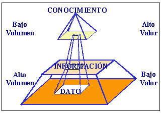 Figura 1. Relación entre dato, información y conocimiento (Molina, 1998).
