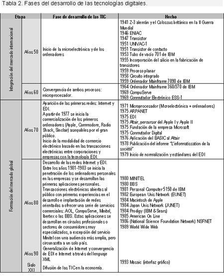La evolución posterior del proceso de digitalización (Internet, EDI, EDI Internet) hace necesaria la aparición de un nuevo marco conceptual, que permita analizar la tecnología como variable endógena de la empresa. En efecto, los estudios empíricos llevados a cabo[5] evidencian para diferentes muestras de empresas que una inversión en tecnologías digitales únicamente se rentabilizará, es decir, generará aumentos sostenidos en la productividad empresarial, si se compagina con cambios organizativos y aumentos en la capacitación de la fuerza de trabajo.